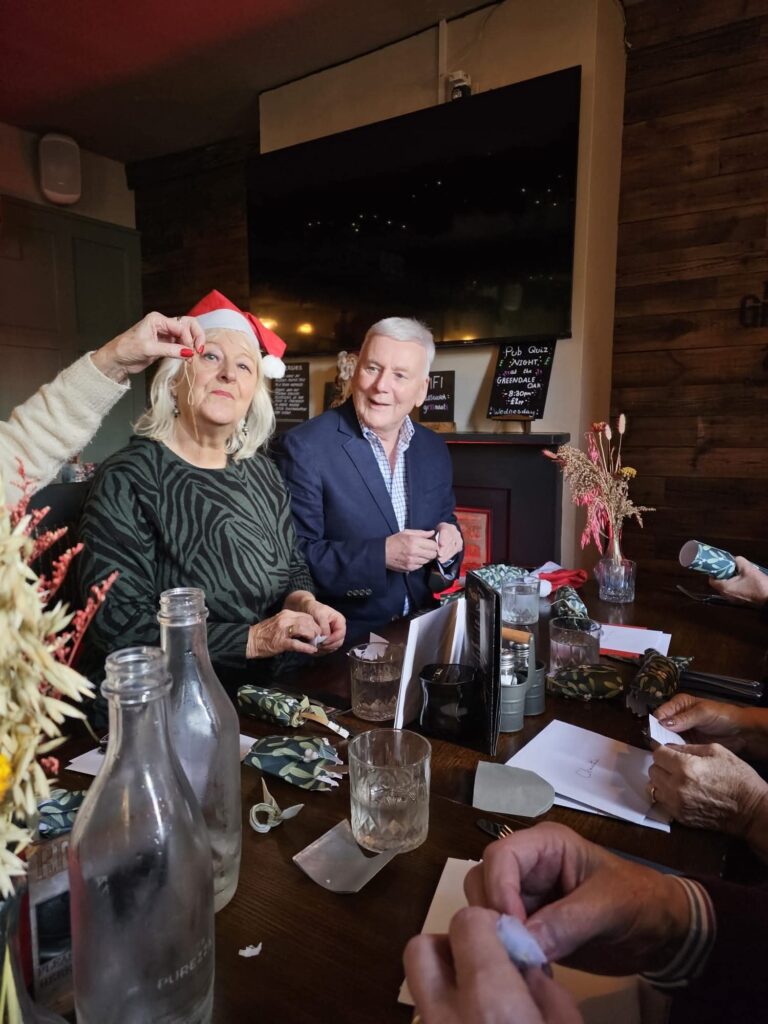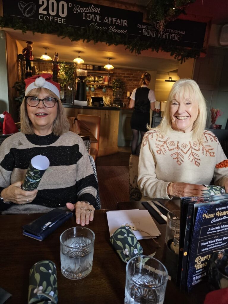 It Was The Play Reading Christmas Lunch Today and it was a wonderful enjoyable delicious lunch to. Many thanks go to James and Michael for organising it at The Greendale Oak Cuckney. Here are some pictures of us today. By the way santa hats was non obligatory