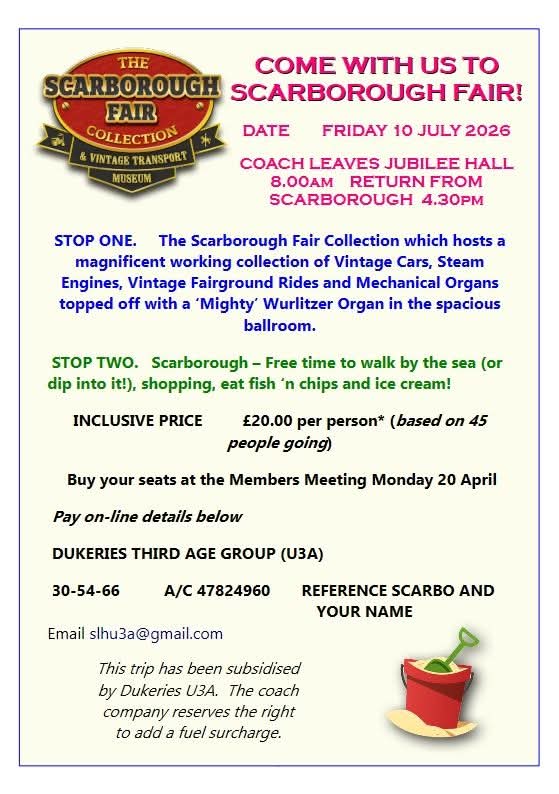 ๐ Join us for a trip to Scarborough! ๐ก The Dukeries U3A is heading to the coast, and youโre invited! Weโve planned a fantastic day out featuring vintage charm and […]